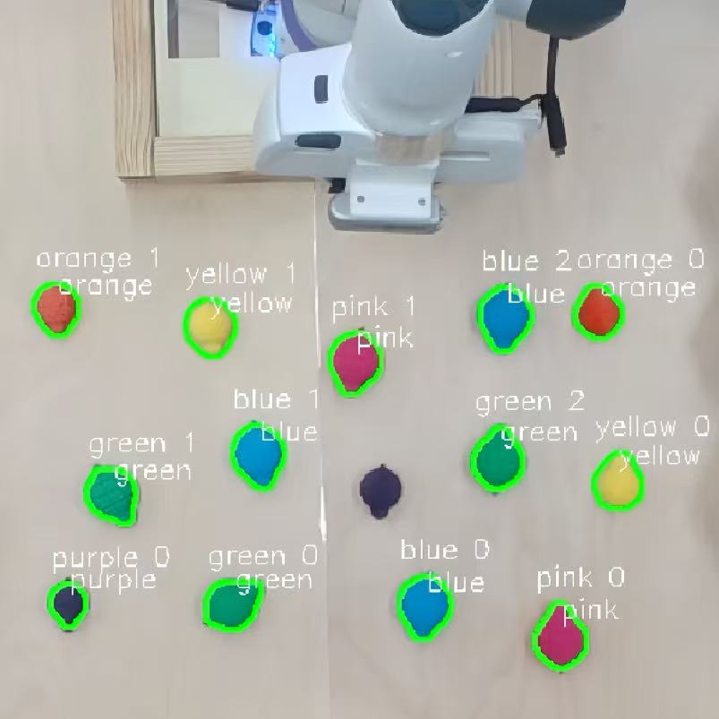 Color-based pick-and-place into designated bins (speed: x5.0)